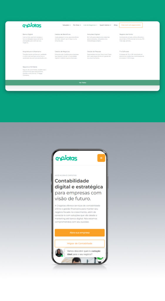 A Cnpjotas agora conta um site moderno e organizado que transmite aos seus antigos e novos clientes sua credibilidade e autoridade na área de contabilidade, porém agora de cara nova e mais completa capaz de garantir soluções completas para seus parceiros com a mesma essência que acompanha a empresa em todas essas décadas.